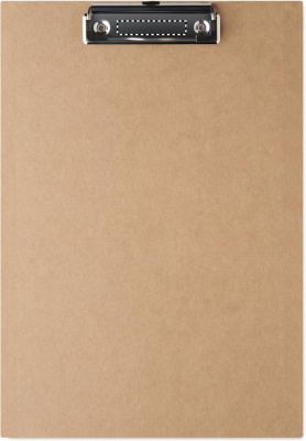 A4 clipboard made of cardboard with paper cover and silver iron clip. Lightweight 125g design, ideal for everyday office or school use.