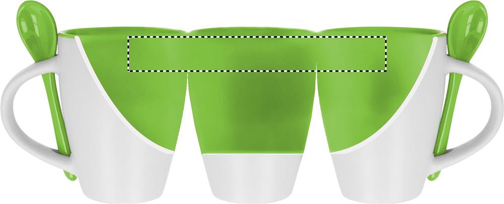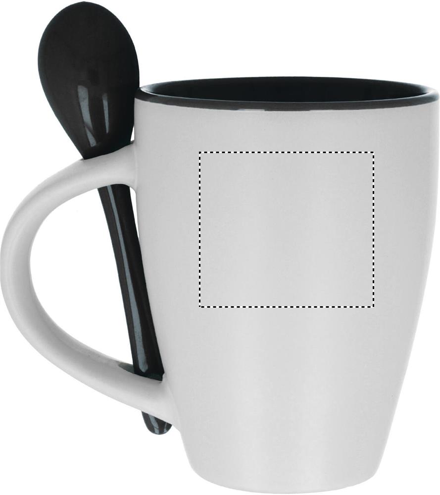Кофейная двухцветная чашка с цветной ложкой. Объем чашки 250 мл. Тампопечать: нельзя мыть в посудомоечной машине. Деколь: можно мыть в посудомоечной машине.