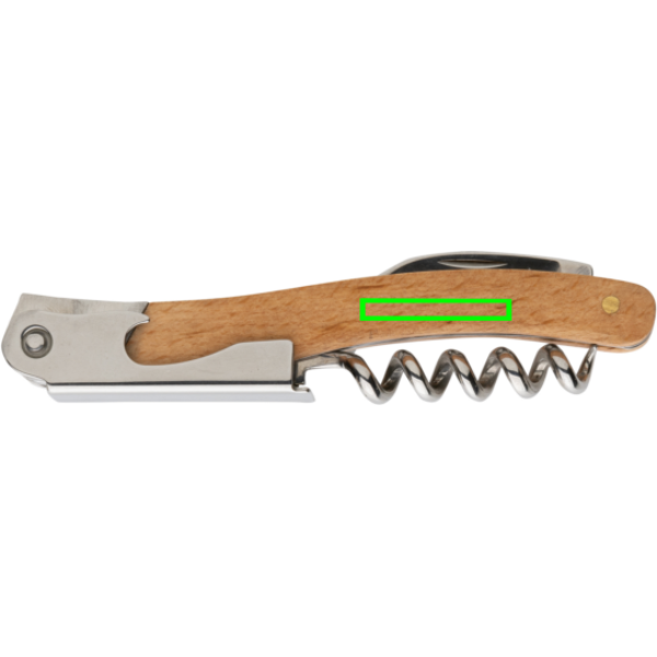 Профессиональный штопор из 100% бука FSC и нержавеющей стали высокой твердости и коррозионной стойкости (420). Твердость по Роквеллу 45-55. Изделие имеет 3 функции: открывалка для бутылок, штопор для пробок и резак для фольги. Упакован в коробку FSC mix kraft.