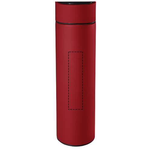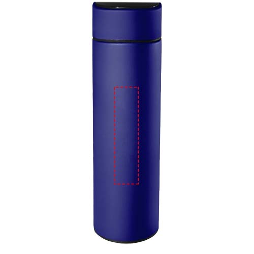Герметично закрывающаяся бутылка из нержавеющей стали 500 мл с двойными стенками. Бутылка оснащена датчиком температуры. Благодаря системе «Touch & Light» температура напитка отображается на крышке бутылки (в градусах Цельсия). Подходит как для горячих, так и для холодных напитков. Поставляется в цилиндрической подарочной коробке из бумаги вторичной переработки. Размер: Ø 47 x 225 мм. Несъемный аккумулятор в комплекте: CR 2450 (3 В). Температура может отображаться 20 000 раз.