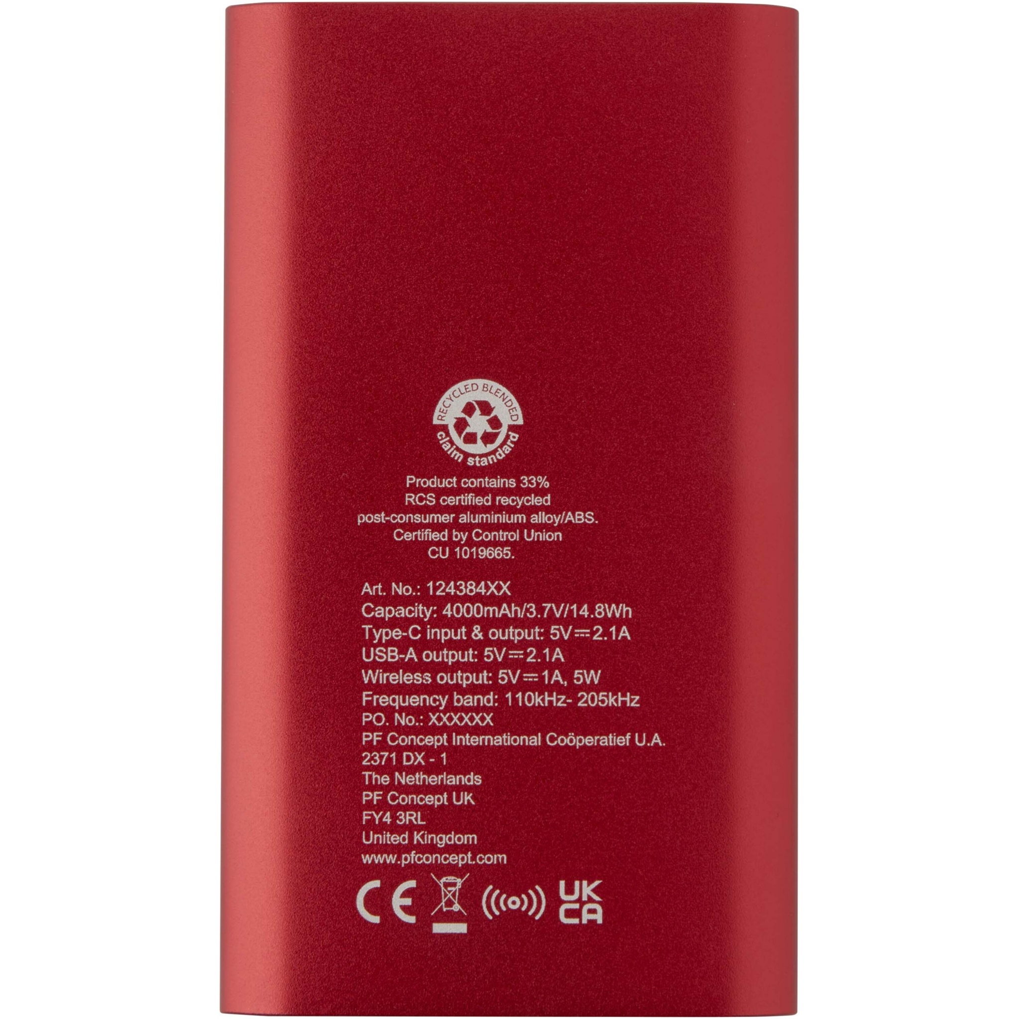 Juice портативное зарядное устройство Type-C из переработанного алюминия емкостью 4000 мАч , Красный
