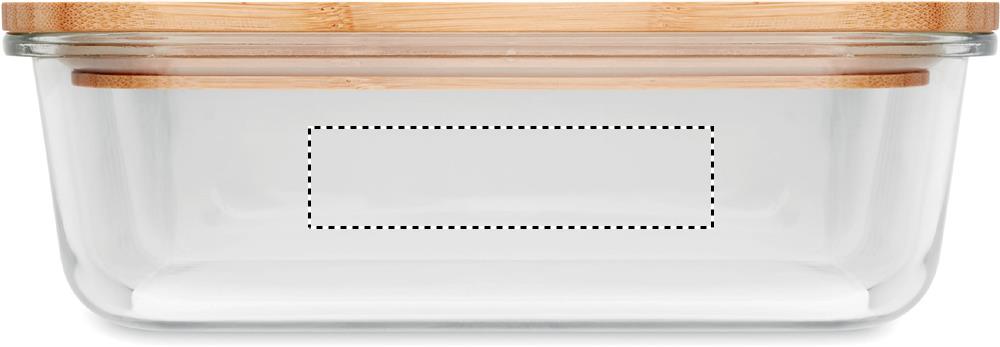 Ланч-бокс из стекла с бамбуковой крышкой и силиконовой лентой. Емкость 800 мл. Бамбук является натуральным материалом, поэтому могут быть небольшие различия в цвете