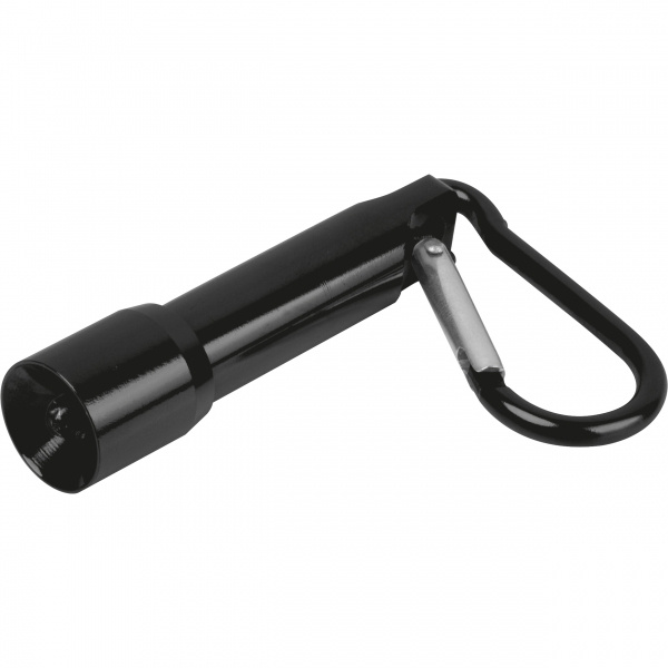 Мини-фонарик с карабином из переработанного алюминия. В комплекте 4 батарейки-таблетки. Ваш логотип нанесён на фонарик лазерной гравировкой.