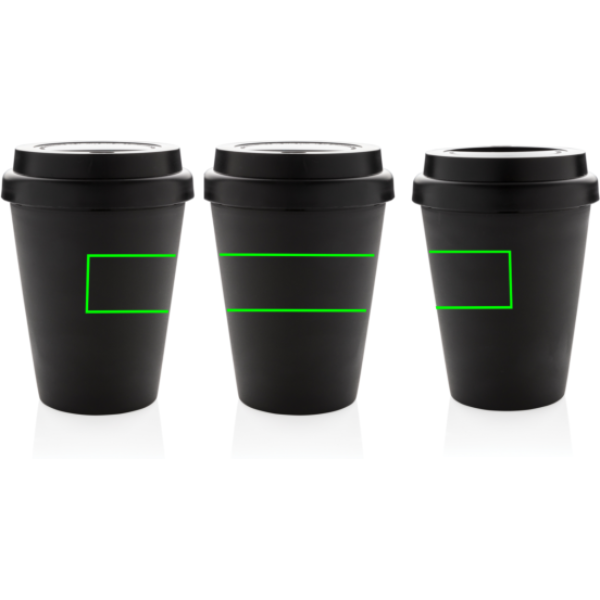 Хватит использовать одноразовую посуду! Приносите свою собственную чашку и присоединяйтесь к революции повторного использования, чтобы внести свой вклад в мир, свободный от одноразовой посуды. Эти легкие и прочные чашки идеально подходят для того, чтобы брать кофе с собой. Кофейная чашка имеет двойные стенки, поэтому она дольше сохранит ваш напиток теплым, чтобы вы могли наслаждаться им. Чашки многоразовые и изготовлены из 100% перерабатываемого полипропилена. Одобрены для пищевых продуктов при температуре 100 градусов по Цельсию. Чашки имеют завинчивающуюся крышку, которая не дает крышке упасть во время питья. Мыть только вручную. Объем: 300 мл.