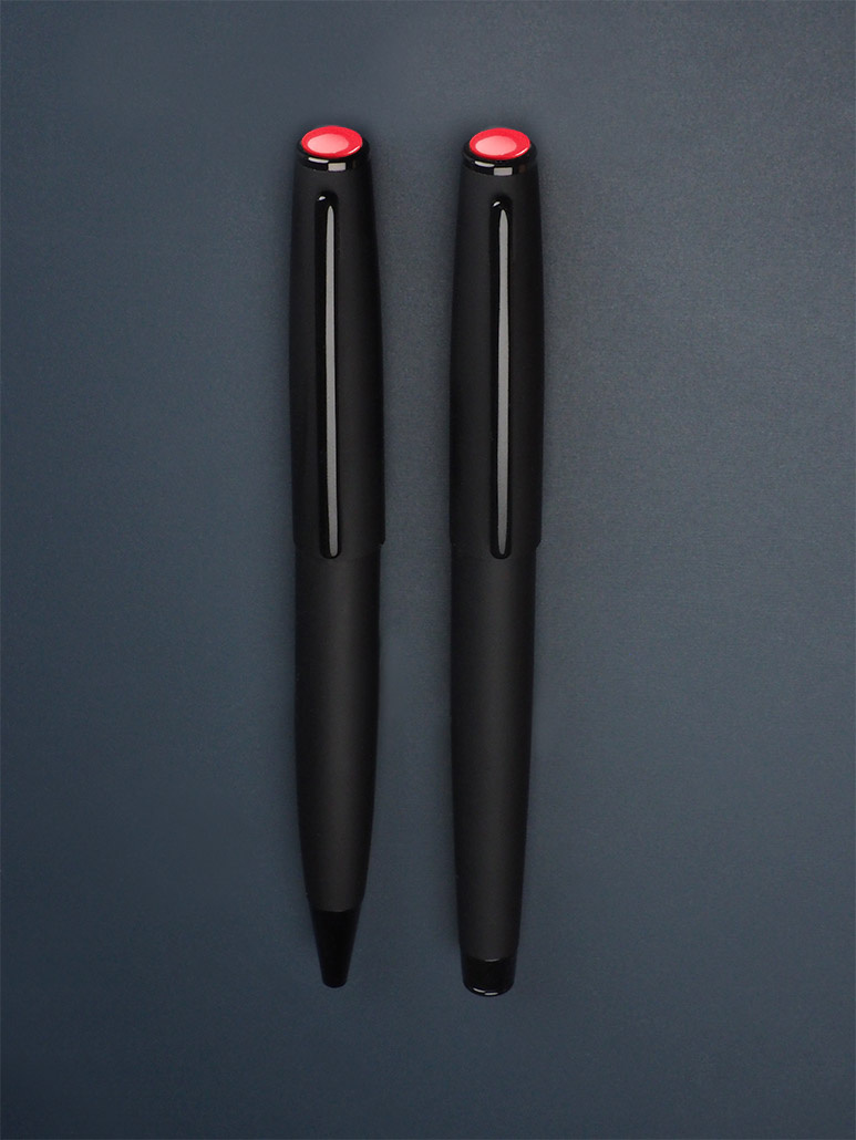 С шариковой ручкой и чернильной ручкой-роллером