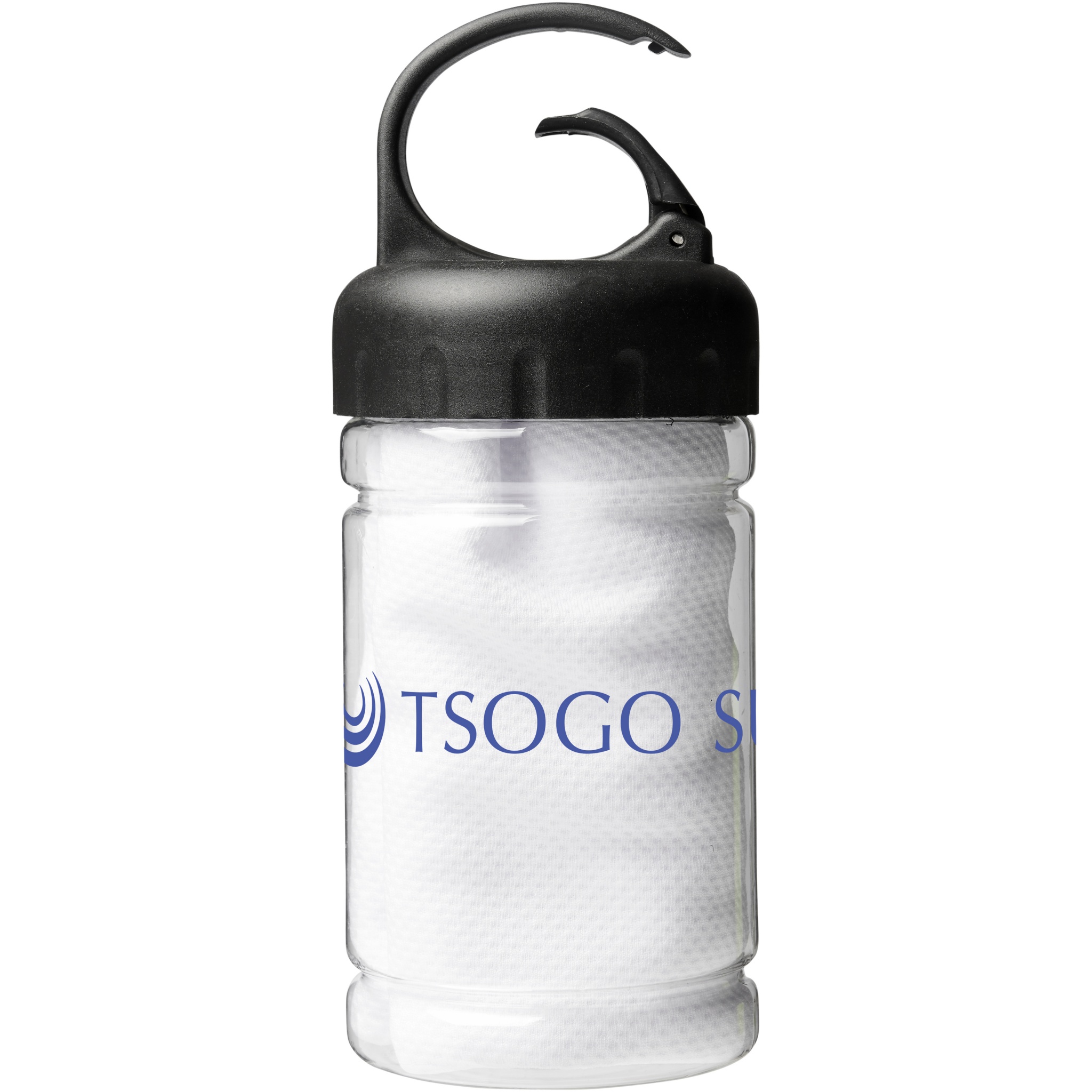 Лого трейд бизнес-подарки фото: Охлаждающее полотенце Remy в ПЭТ-контейнере