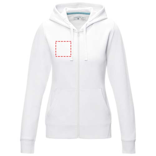 The Ruby women's organic recycled full zip hoodie – this hoodie showcases a blend of eco-conscious features that redefine modern fashion. With a soft brushed interior, it ensures a cozy feel. Made from a 280 g/m² blend of organic cotton and recycled polyester. This hoodie is designed with a fitted shape for a feminine look.