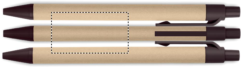 Ручка шариковая в корпусе из картона. Фурнитура является сплавом из 40% кофейной кожуры и 60% пластика АБС.
