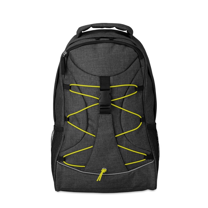Рюкзак из полиэстера 600D с ярким контрастным шнурком и светоотражающей полоской на передней панели. Сетчатые карманы с обеих сторон.
