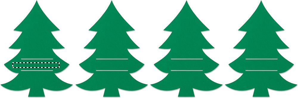 Набор из 4 фетровых (RPET) салфеток для столовых приборов в форме новогодней елки. Упакован в крафт-коробку