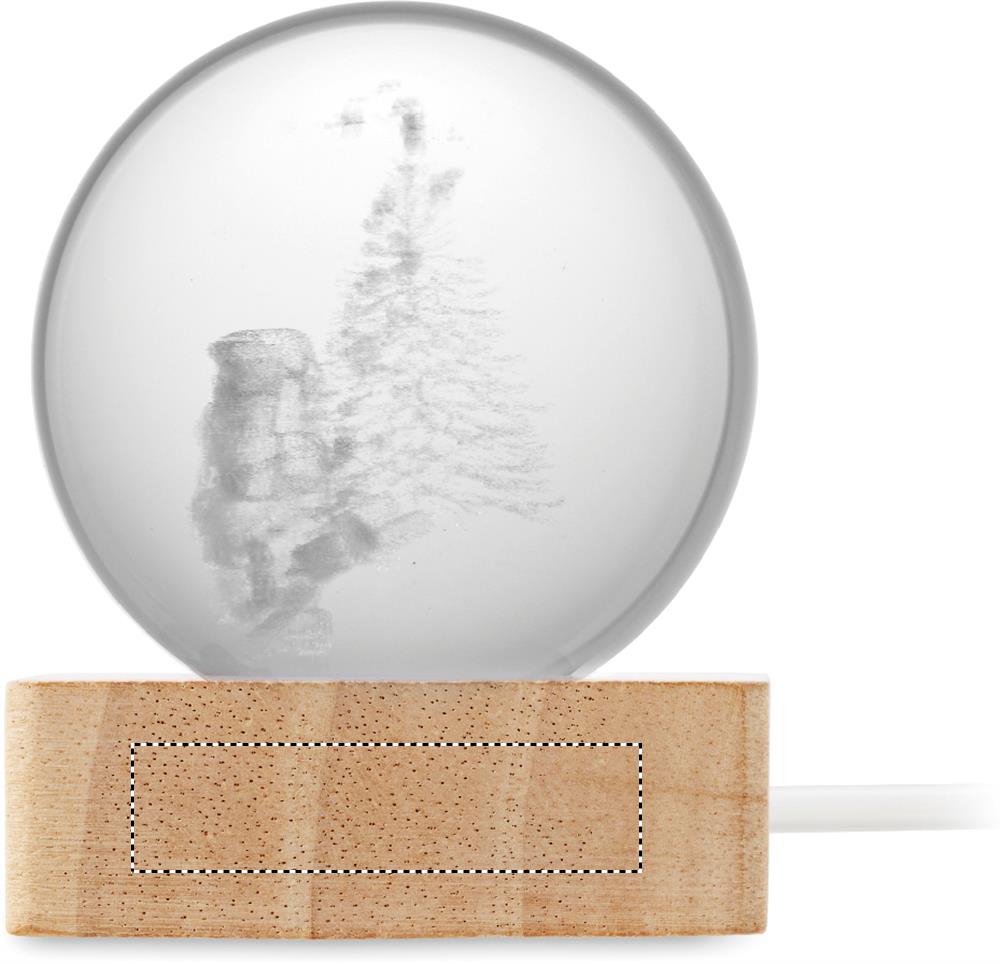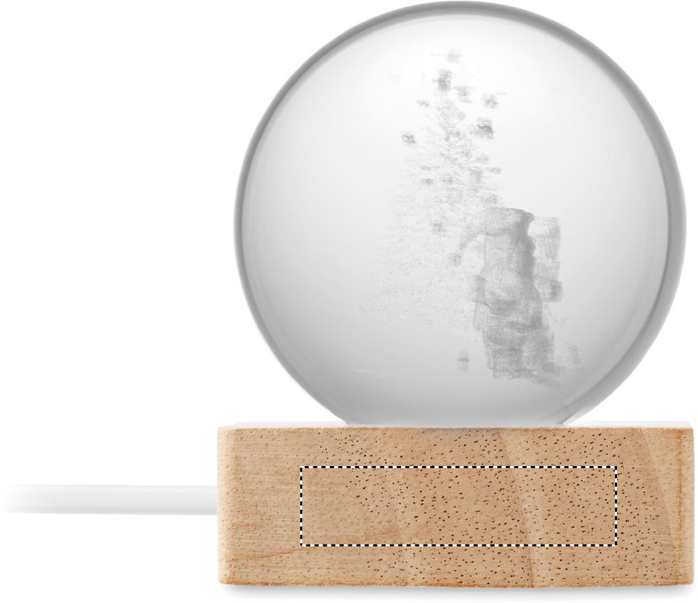 Хрустальный рождественский шар со светодиодной подсветкой (100 люмен) на деревянной подставке с каучуковым дном. В комплект входит USB-кабель для зарядки (90 см).