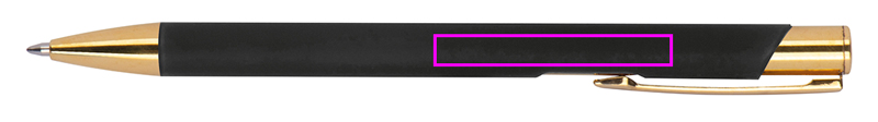Шариковая ручка из алюминия с золотыми аппликациями, резиновым покрытием и синим стержнем большой емкости. Ваш логотип будет нанесен лазером на правую сторону зажима, он будет золотистого цвета.