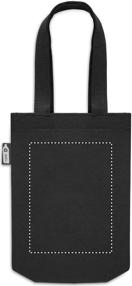 Small RPET felt gift or goodie bag with short handles and bottom gussets. Felt thickness: 1 mm.