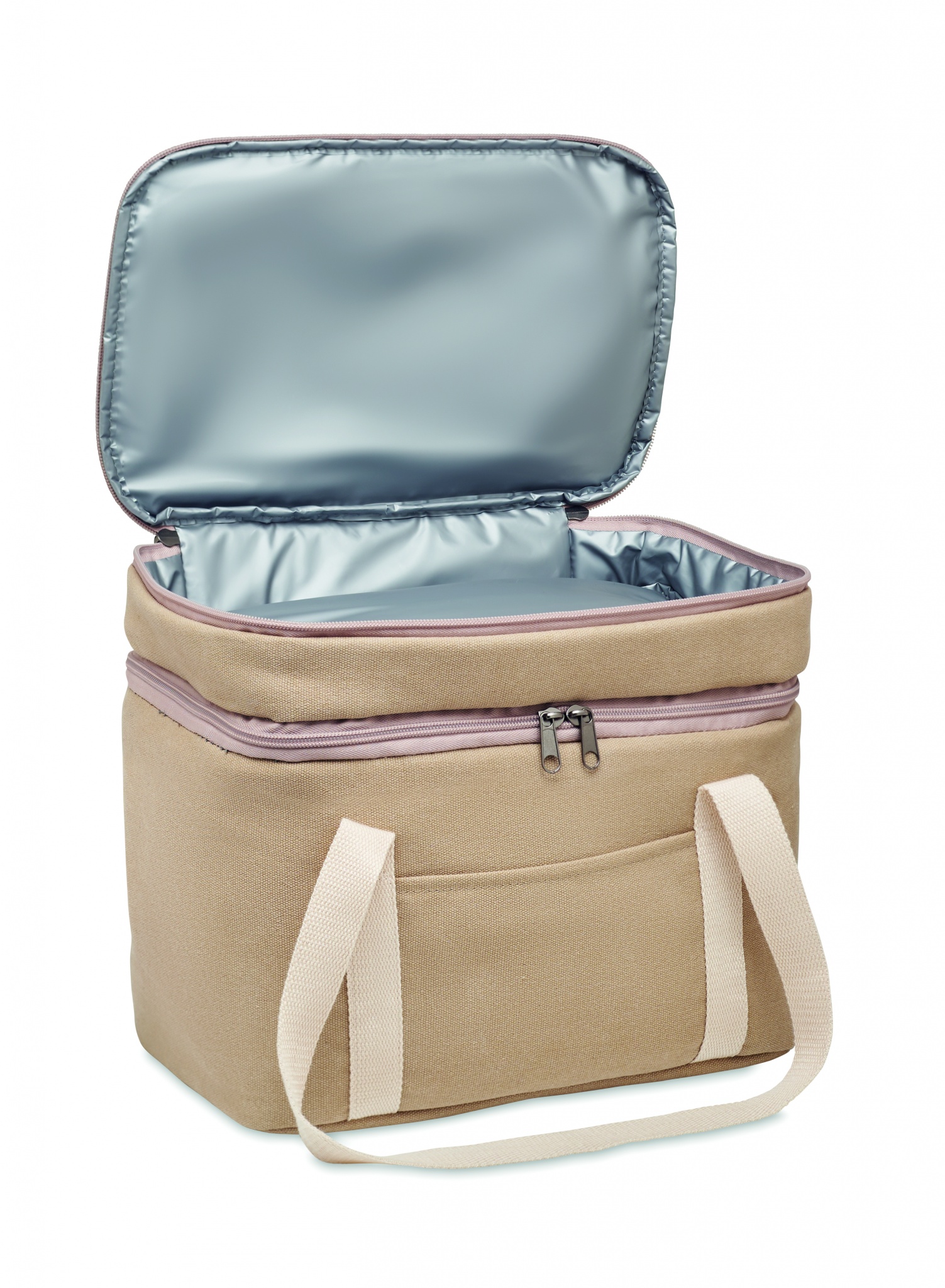 Парусиновая сумка-холодильник с 2 отделениями и хлопковым ремешком. 320 гр/м². Термоизоляция: 15C PEVA и 6 мм пенополиэтилен.