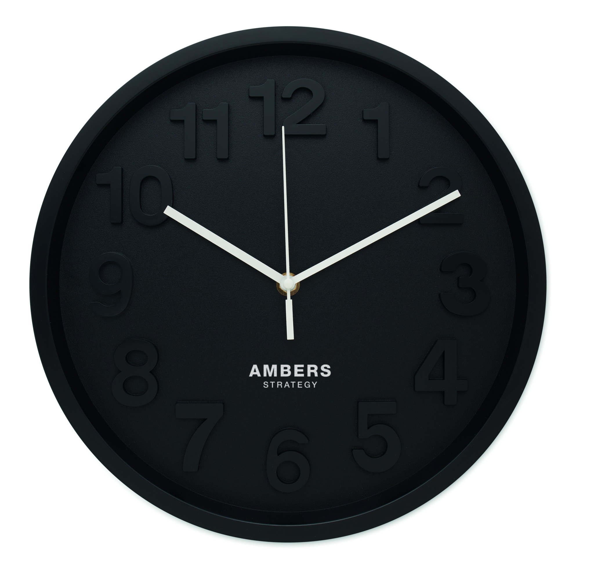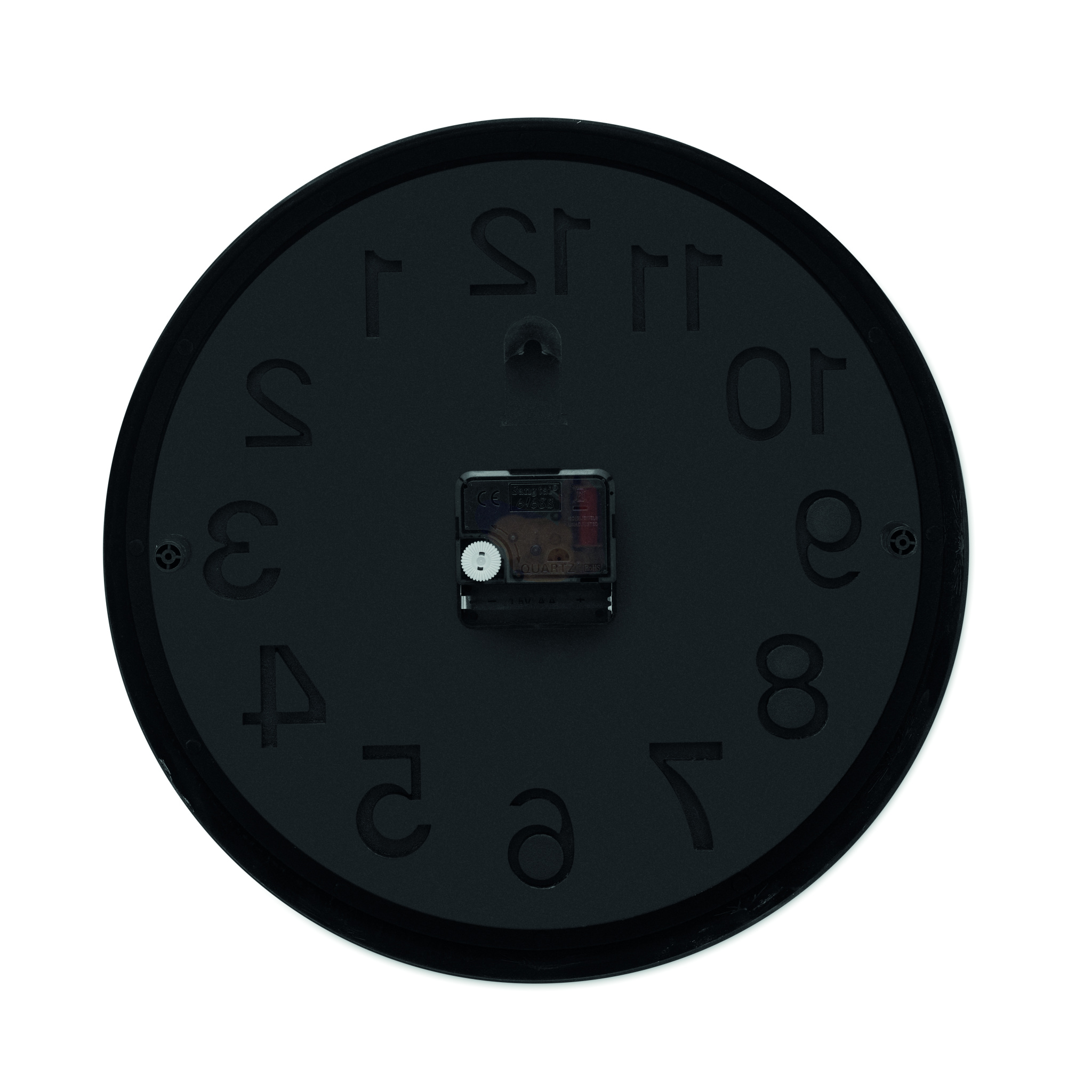 Wall clock in PP with aluminium hands and silent movement. Requires 1 AA battery (not included).