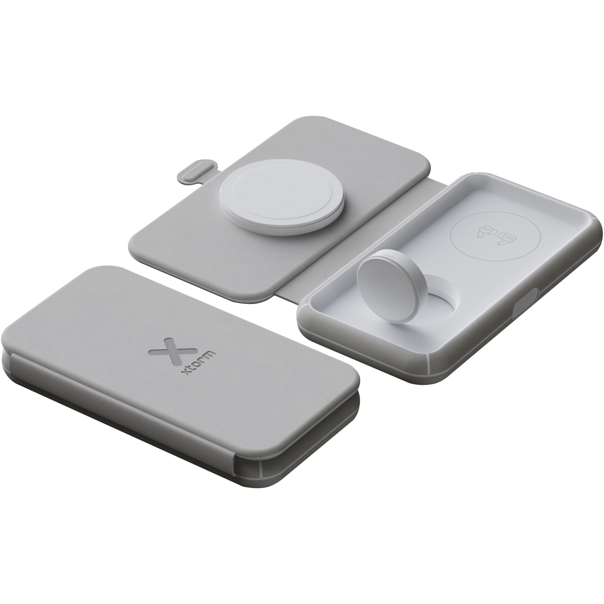 С помощью этого компактного, складного и элегантного беспроводного магнитного дорожного зарядного устройства вы можете одновременно заряжать свой iPhone, Apple Watch и AirPods! Идеально подходит для зарядки дома, в офисе или во время ночной поездки. В комплект входит 1 магнитное беспроводное зарядное устройство (15 Вт), 1 зарядное устройство для Apple Watch (3 Вт) и 1 беспроводная поверхность Qi (3 Вт). Входная мощность: Подача питания USB-C мощностью 30 Вт. В комплект поставки входит кабель питания USB-C длиной 1 метр и руководство пользователя.