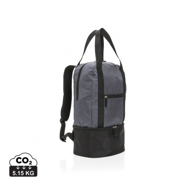 Denna 500D polyester ryggsäck i två färgtoner har ett huvudfack för dina badkläder och ett kylfack i botten med plats för upp till 8 burkar. Lätt att ändra till toteväska med bärremmarna.