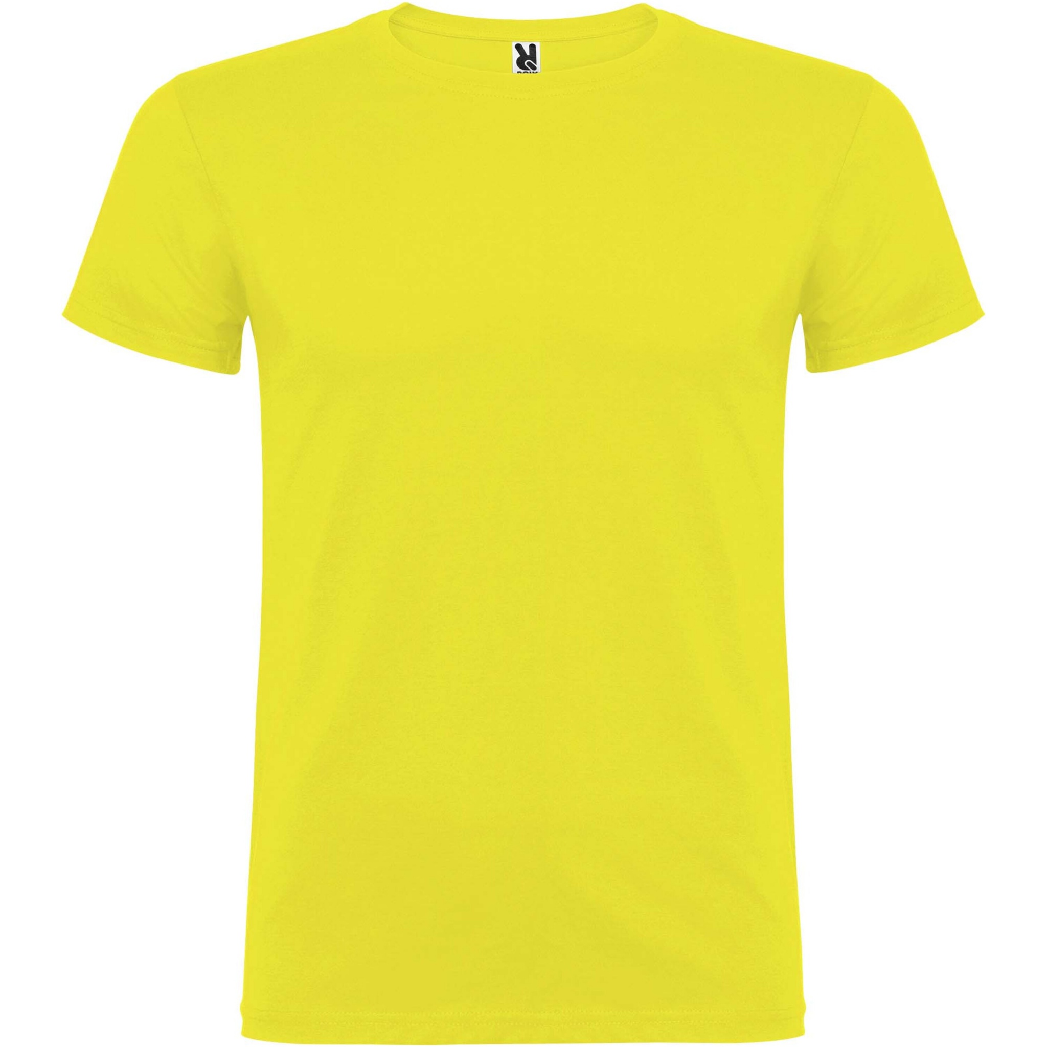Kortärmad T-shirt med dubbel rund halsringning i elastan, tillverkad i tubstickat tyg för vuxna. Förstärkta dolda sömmar i kragen. Borttagbar etikett. Modellen är 190 cm och bär storlek L.