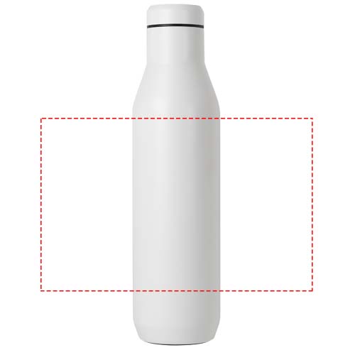 Njut av ditt vin med vinflaskan Horizon på 750 ml. Den är konstuerad med dubbla och vakuumisolerade väggar som bibehåller den idealiska temperaturen för ditt favoritvin och förhindrar kondens med sin yttre pulverlackeringsfinish. Oavsett om du njuter av en picknick utomhus eller är värd för en middagsfest är denna vinflaska utformad för att hålla ditt vin kallt i 35 timmar. Om du använder flaskan för glögg håller den sig varm i upp till 25 timmar. Med en generös 750 ml kapacitet kan den fyllas med en hel flaska vin. Livstidsgaranti för tillverkningsfel. Halkskyddad silikonbas. Fri från BPA, BPS och BPF.