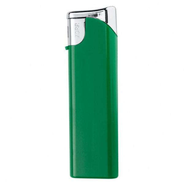 Påfyllningsbar elektronisk tändare av plast. Naturligtvis har denna modell det obligatoriska barnsäkerhetslåset. Vi trycker din logotyp på ena sidan av tändaren.