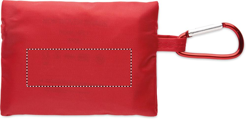 Litet första hjälpen-kit i RPET-påse med karbinhake i aluminium. Innehåller 4 alkoholservetter, 3 plåster, 2 bandage, 2 gasbindor, 1 tejp och 1 sax. Ej tillgänglig för försäljning utanför EU.