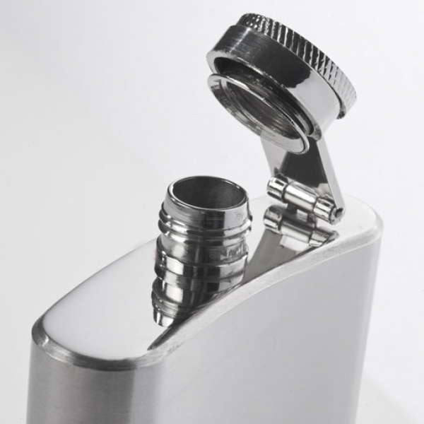 skål! Ta en klunk på vägen! Höftkolv tillverkad av rostfritt stål med en säkerhetsskruv och en kapacitet på 104 ml. Den idealiska presenten som din logotyp kommer att lasergraveras på. Varje höftflaska är förpackad i en enda kartong.
