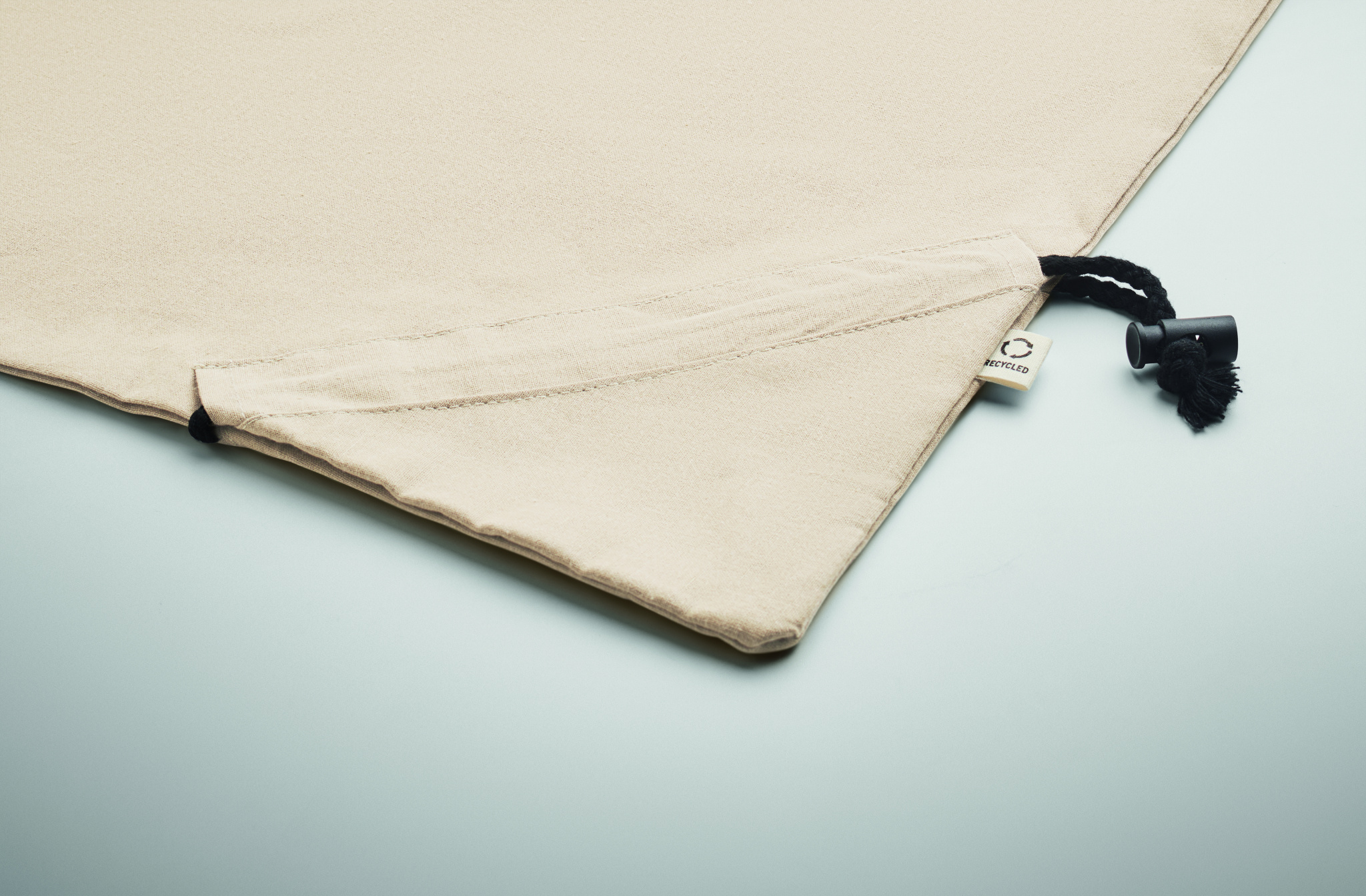 Hopvikbar kasse av återvunnen bomull (70% återvunnen bomull och 30% RPET). 140 gr/m². Produkten kan krympa något efter märkning.