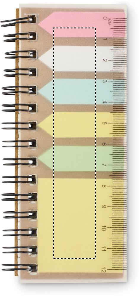 Memopad i PP med klisterlappar och 5 färgmarkeringspennor i återvunnet papper. Ringband.