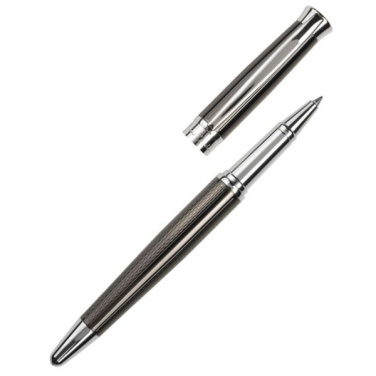Denna rullpenna har en mycket elegant form och fin gravering över hela ytan. Den innehåller en tysk Schmidt refill i blått med 0,6 mm spets. Levereras med en extra svart refill i en lyxig Pierre Cardin-låda med ett äkthetscertifikat.
