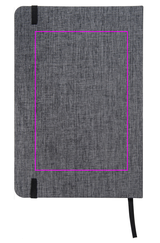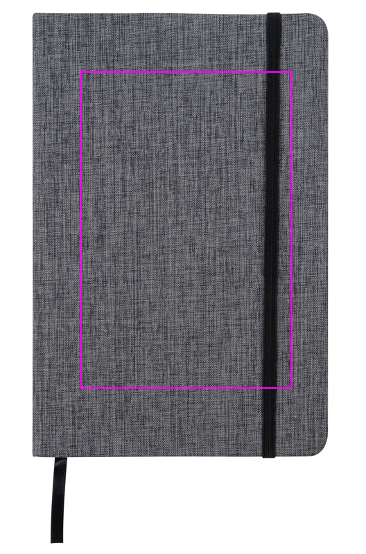 A5-anteckningsbok med ett elegant 300D-polyesteromslag i canvas, svart gummistängning och bokmärke. 160 raderade sidor. Vi trycker din logotyp på omslaget.