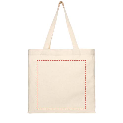 Tygväska på 210 g/m2 i återvunnen bomullspolyesterblanding. Återvunnen bomull är tillverkad av konsumentavfall som genereras av textilfabriker under skärprocessen. Tygväska med kil och stort huvudfack. Har två handtag med en höjd på 31 cm. Klarar upp till 10 kg vikt. Det kan finnas mindre variationer i färgen på den faktiska produkten på grund av produktionsprocessens art.
