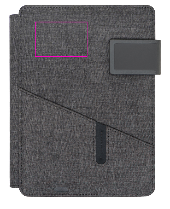 Powerbank-mapp A5 med integrerad powerbank (4 000 mAh), anteckningsbok (128 sidor) och glidficka på framsidan. Ingång: 5V/1A - Utgång: 5V/2,1A. Vi kommer att trycka din logotyp på framsidan.