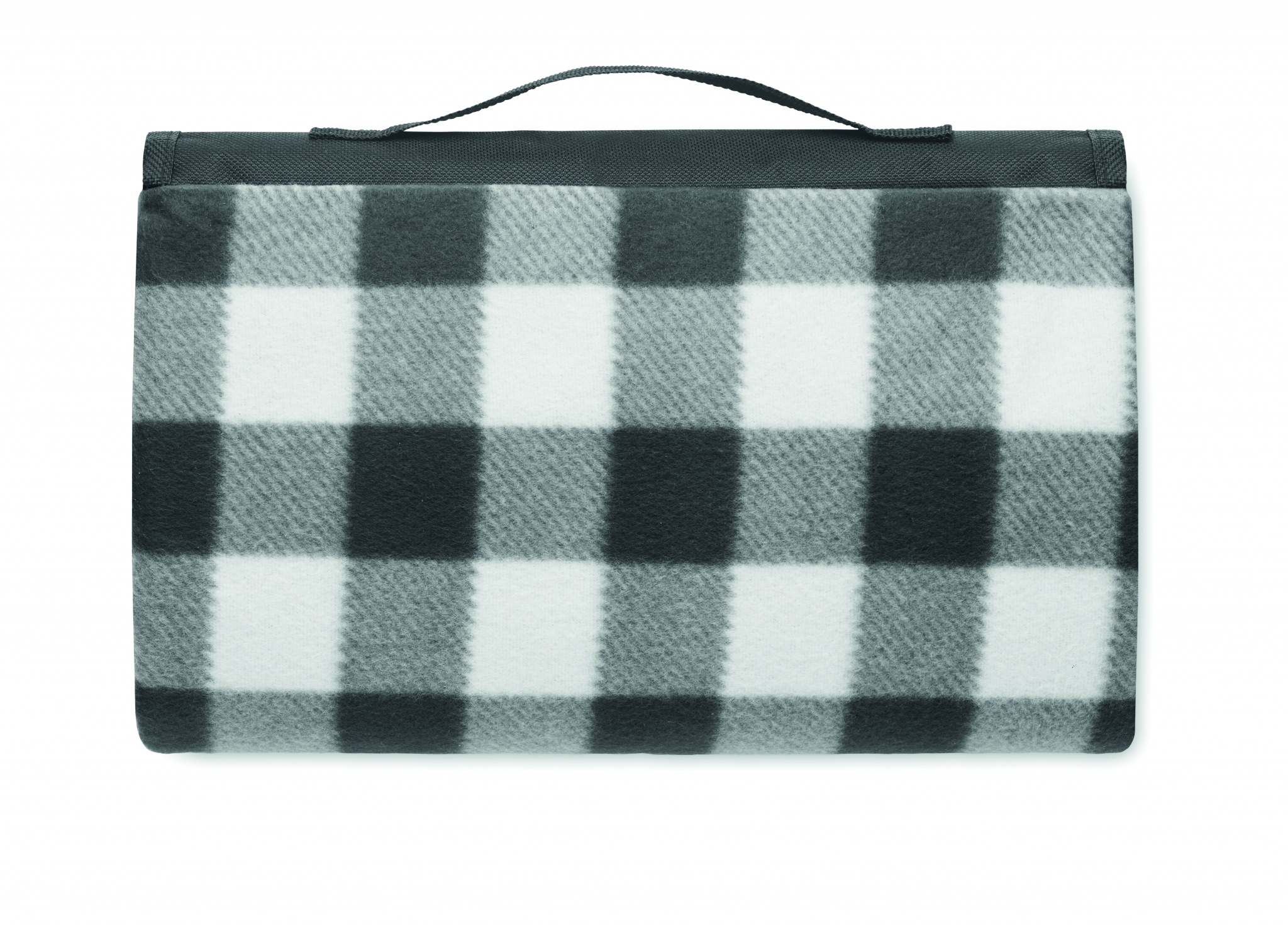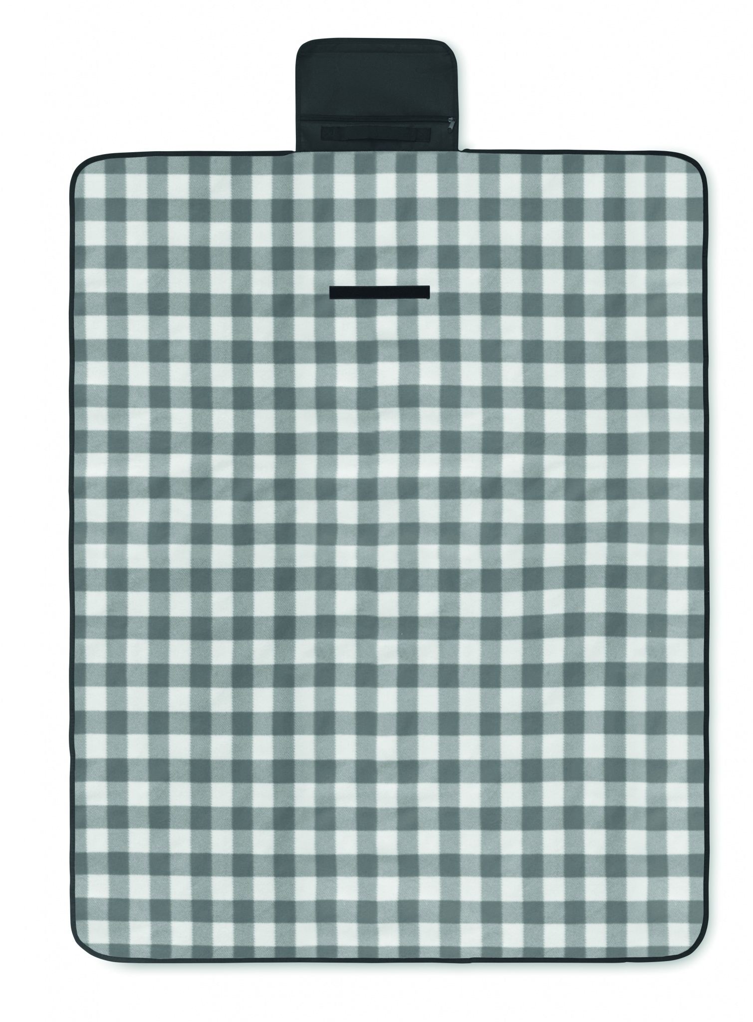 Vikbar RPET 150 gr/m² polarfleece picknickfilt med vattenavvisande belagd PEVA-baksida. Inkluderar en ficka med dragkedja på framsidan och en kort bärrem.