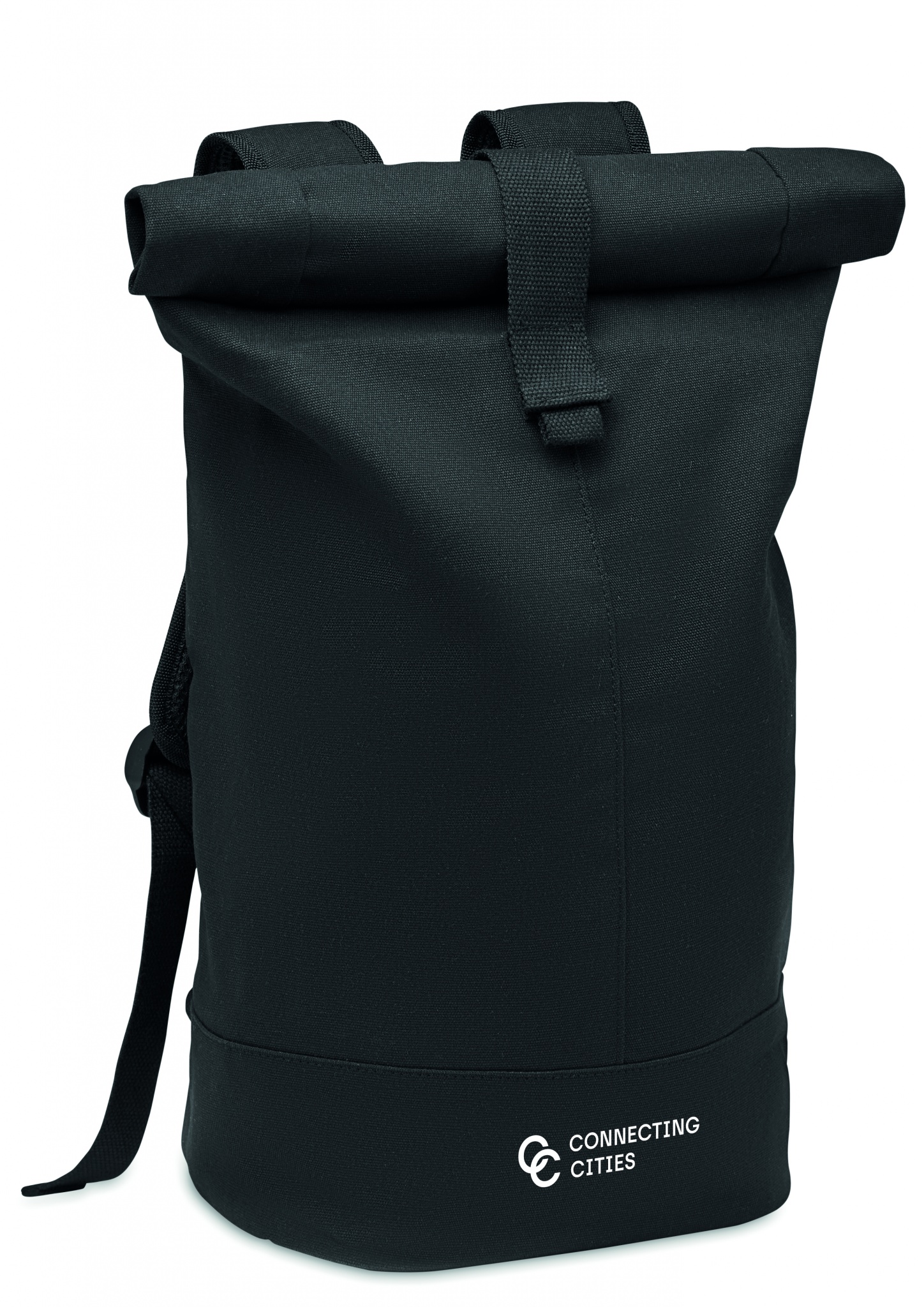 Ryggsäck i högkvalitativ 340 gr/m² tvättad canvas med vadderad ryggförstärkning. Stängs genom att rulla topen. Foder i RPET 210D.