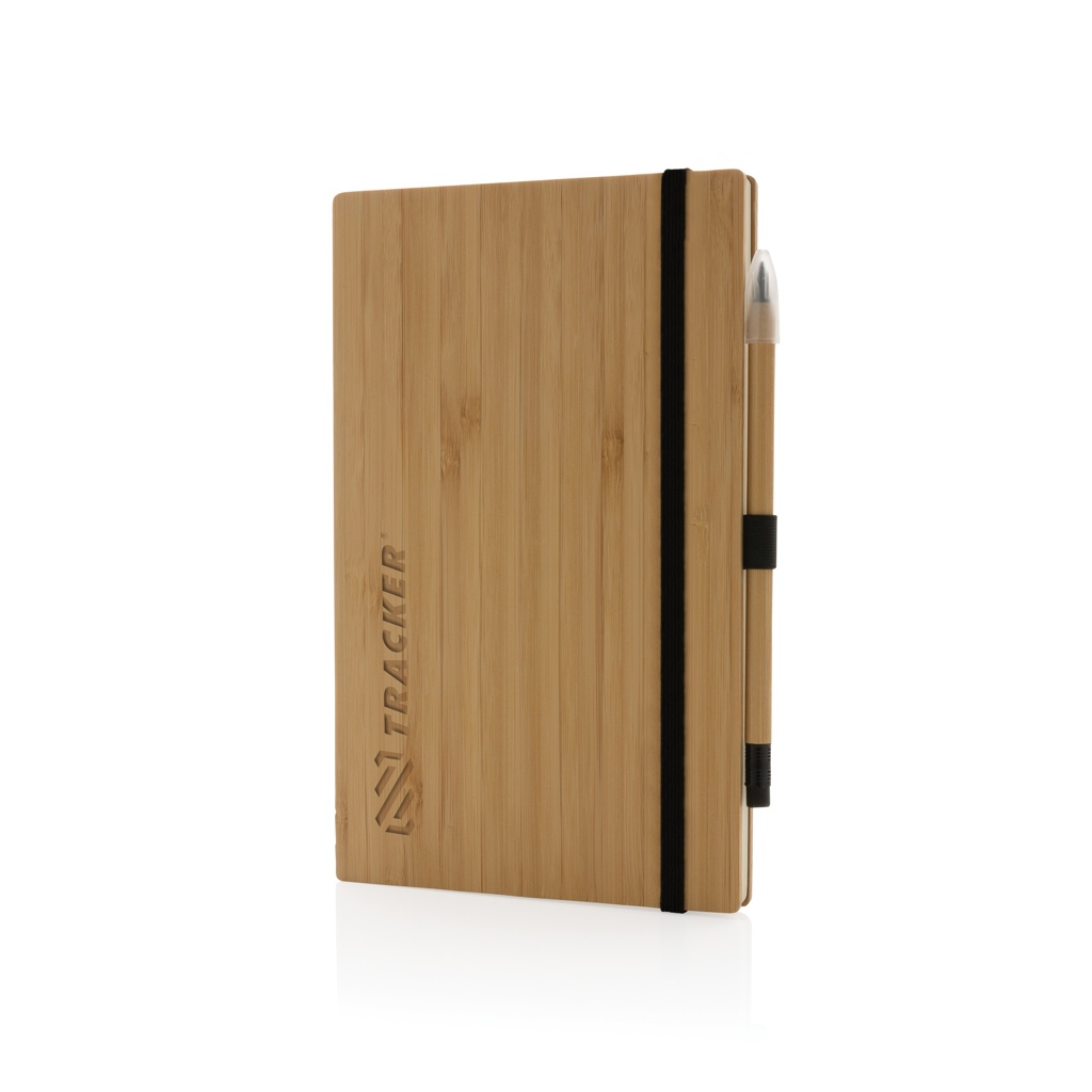 Anteckningsbok i FSC® certifierad bambu. 80 blad/160 sidor 70 gsm återvunnet papper. I setet ingår en infinity penna som räcker längre än 100 vanliga blyertspennor. Pennan har upp till 20.000 meter skrift med sin grafitspets för att producera en grafitlinje. Den inte bara skriver som en vanlig blyertspenna, skriften kan även suddas ut. Med FSC® certifierad bambu i en FSC® kraft giftbox.