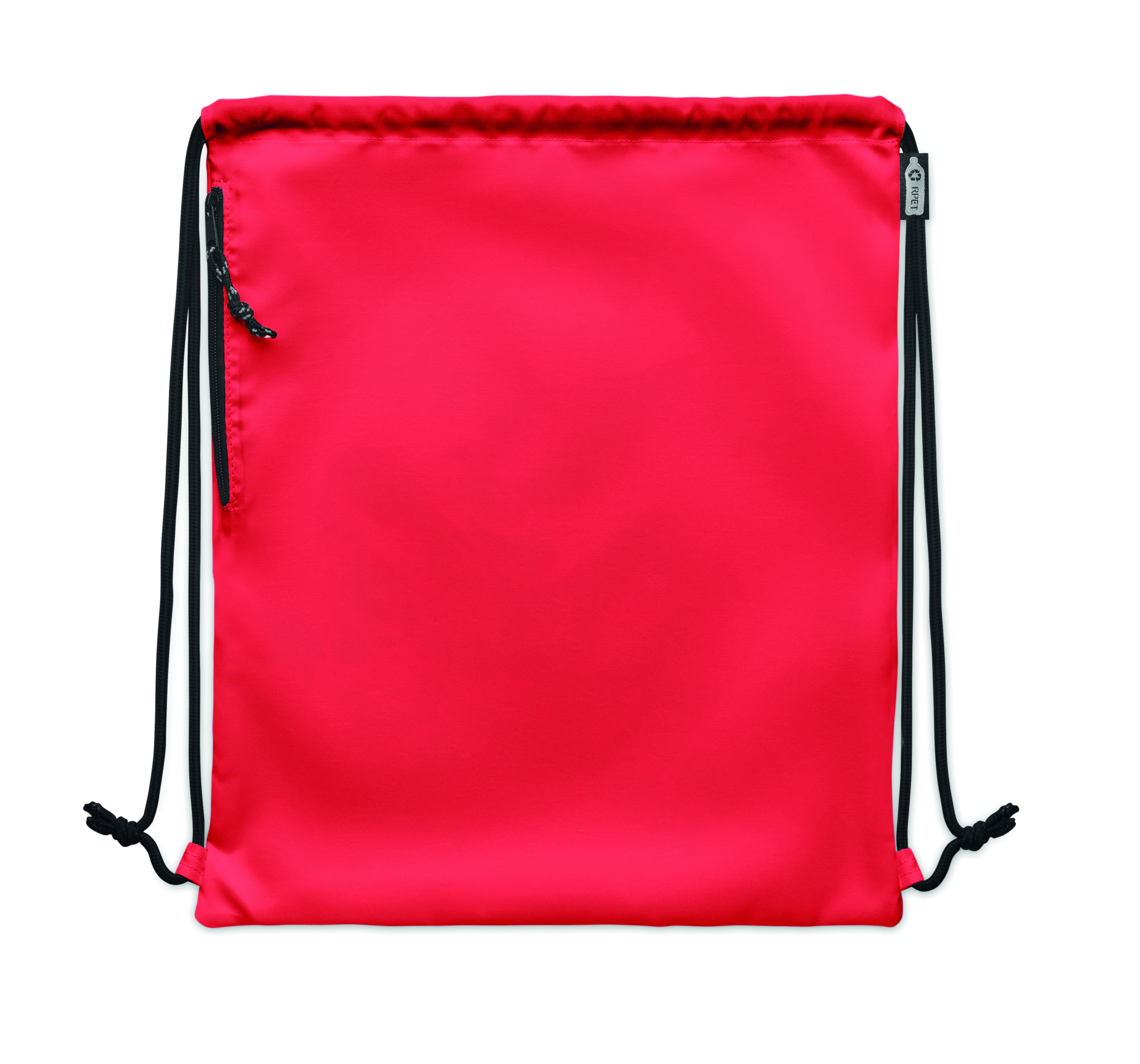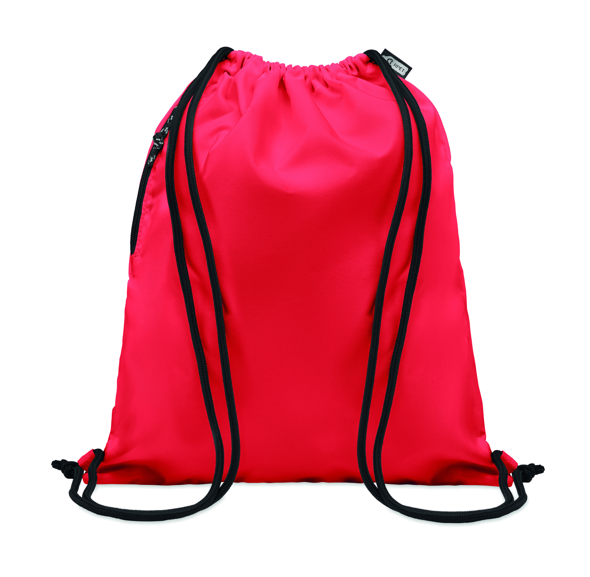 Stor Gympapåse i 300D RPET-polyester med sidoficka med dragkedja på utsidan. Tjocka snören.