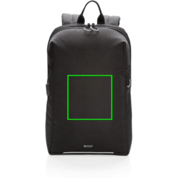 Stilig laptopryggsäck som är väl lämpad som handbagage. Vadderat laptopfack med plats för 15,6" laptop. Trolley-rem och USB A output. RFID-skyddat fack på sidan med enkel åtkomst. Reflekterande remsa på framsidan. Med AWARE™ spårämne som validerar användandet av genuint återvunna material. 2% av intäkterna för varje såld Aware™-produkt kommer att doneras till Water.org. PVC-fri.