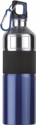 Tvåfärgad dricksflaska i rostfritt stål med gummi grepp och karbinhake. 750 ml. Läckagefritt.