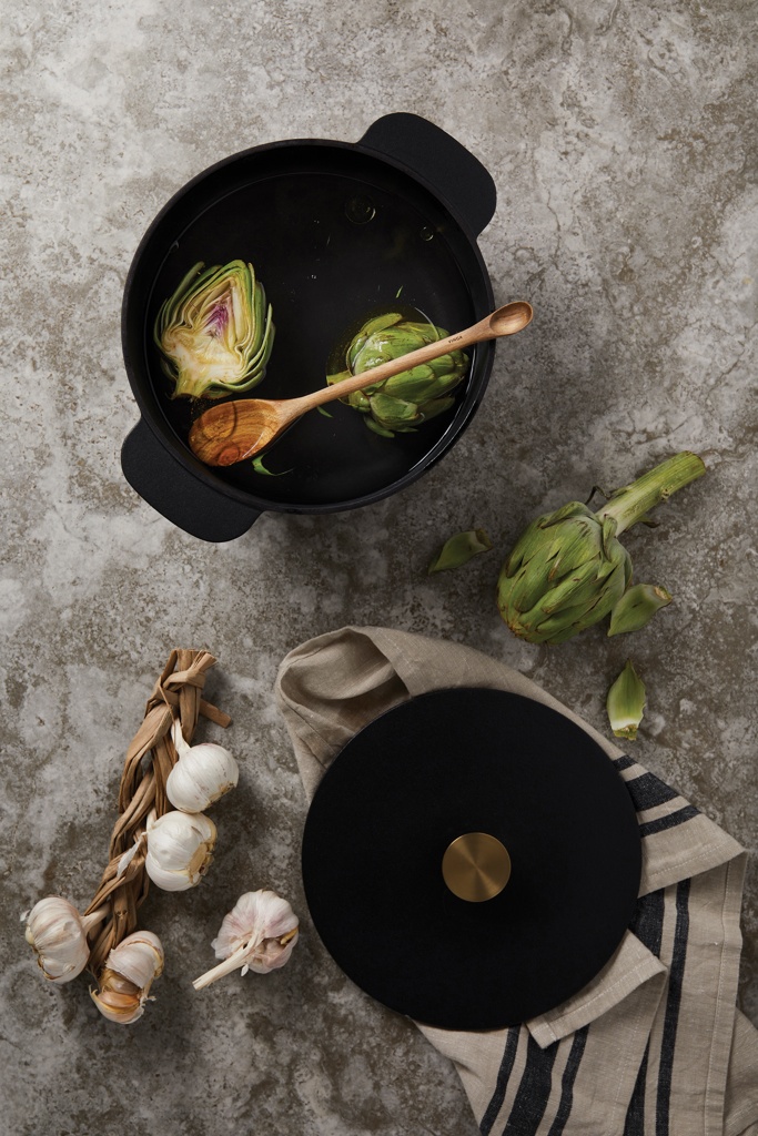 Ukiyo emaljerad gjutjärnspanna är ett kulinariskt kraftpaket. Passar lika bra till grytor, stek och soppor. Den enda pannan du behöver för att svänga ihop en ljuvlig måltid. Gjutjärnskonstruktionen bevarar värmen, tillagar och bryner maten jämnt. Dina kulinariska skapelser håller sig även varma längre på bordet. Lämpad för ugn, spis, induktion eller under grillen. Volym: 5,2 L. Diameter 26cm. Levereras i FSC® certifierad kraft förpackning.