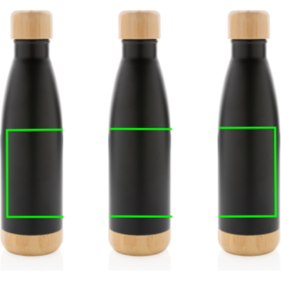 Vakuum stainless steel flaska med kork och botten i bambu, svart