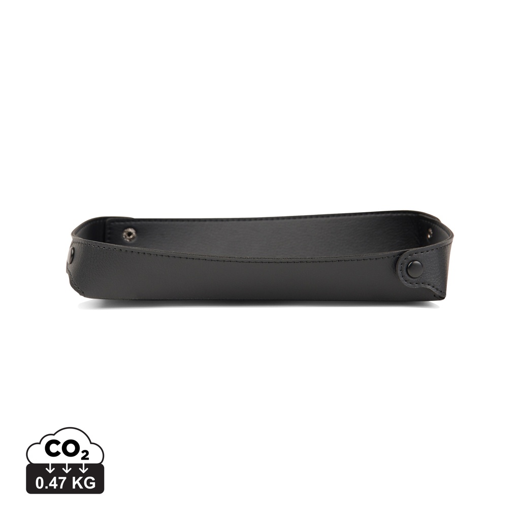 Bricka i exklusivt PU utrustad med tryckknappar i varje hörn. När hörnen är fastsatta tillsammans förvandlas den till en bricka. En detaljerad sömnad runt brickan ger en extra touch av elegans. Med dimensioner på L: 22 cm x B: 12 cm x H: 5 cm när den är hopfälld, är den perfekt för att organisera dina skrivbordsnödvändigheter. Certifierad enligt RCS (Recycled Claim Standard), garanterar RSC-certifieringen att hela leveranskedjan av återvunna material är certifierad. Det totala återvunna innehållet baseras på produktens totala vikt. Denna produkt innehåller 40% RCS-certifierat återvunnen polyester.